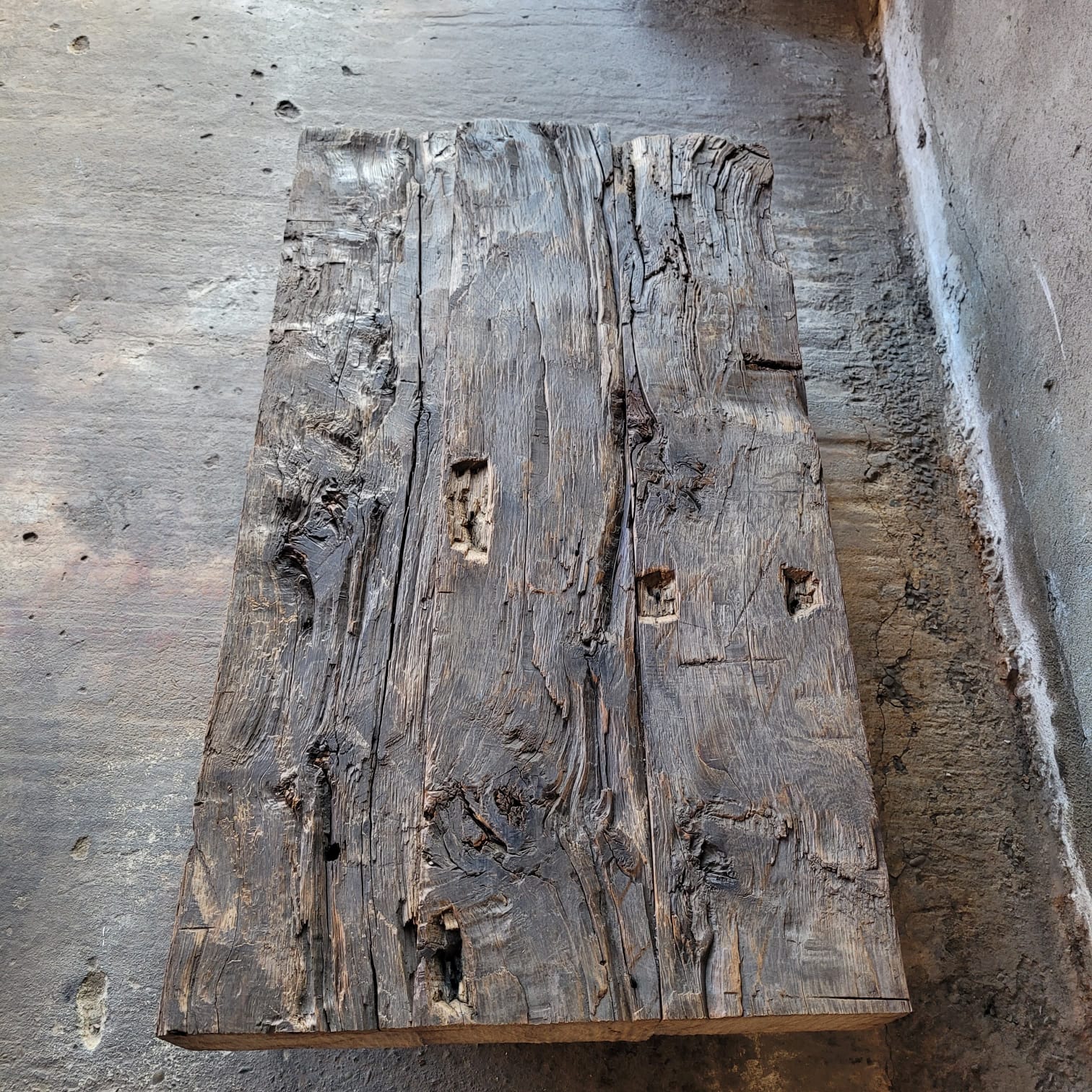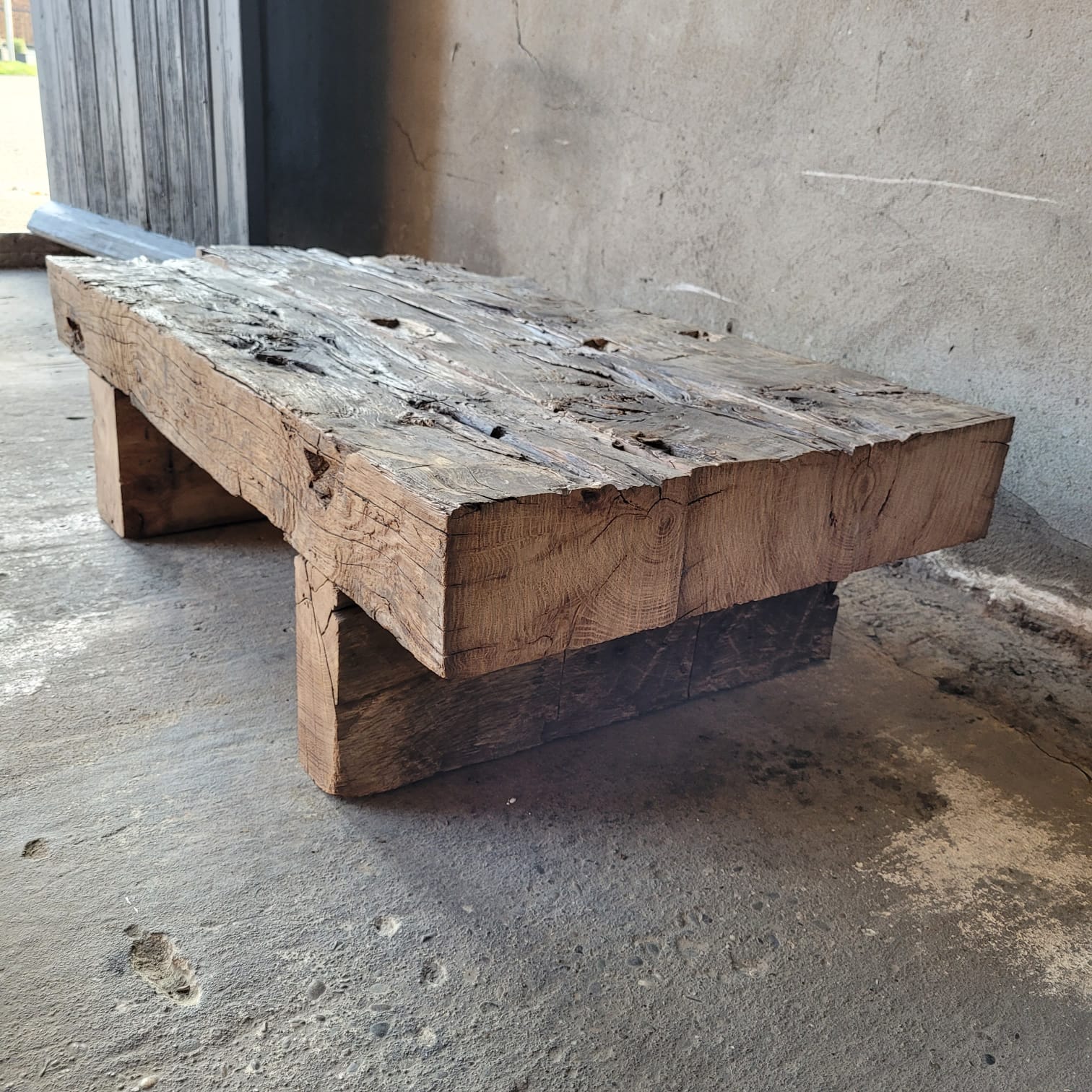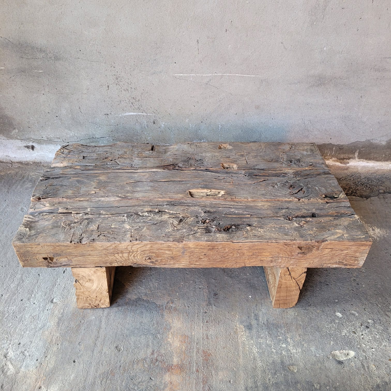 Deze stoere salontafel is gemaakt van oude rustieke Eiken balken. De balken hebben jaren gediend in oude panden zoals kastelen en boerderijen en daardoor hebben ze een prachtige uitstraling/ patina gekregen.